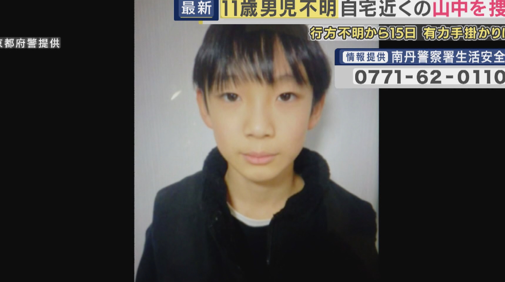 京都府南丹市で発生した男子児童の行方不明事案は、発生から2週間以上が経過した現在も有力な手掛かりが見つからず、地域社会に大きな不安を広げている。警察は7日早朝から、児童の自宅近くにある山林を重点的に捜索し、発見につながる痕跡を探している。