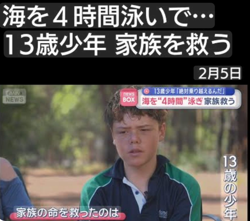 両親が語る言葉どおり、少年の決断と行動が家族の命を守った。恐怖の海で見せた勇気は、多くの人の胸を打っている。