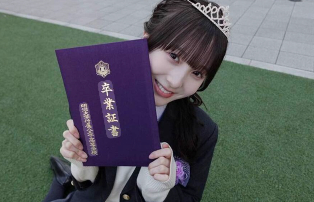 投稿では「高校を卒業しました」とコメントし、校門前での写真を公開。看板には明治大学付属八王子高等学校の校名が掲げられており、進学校として知られる同校での3年間を終えたことを明かした。